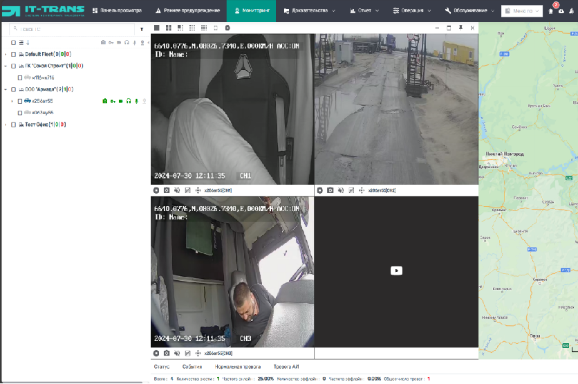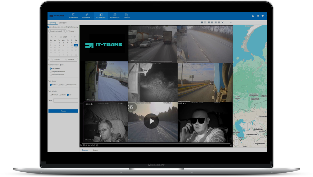 Постоянный онлайн доступ ко всем камерам на ТС, запись и просмотр архивов, разбор инцидентов
